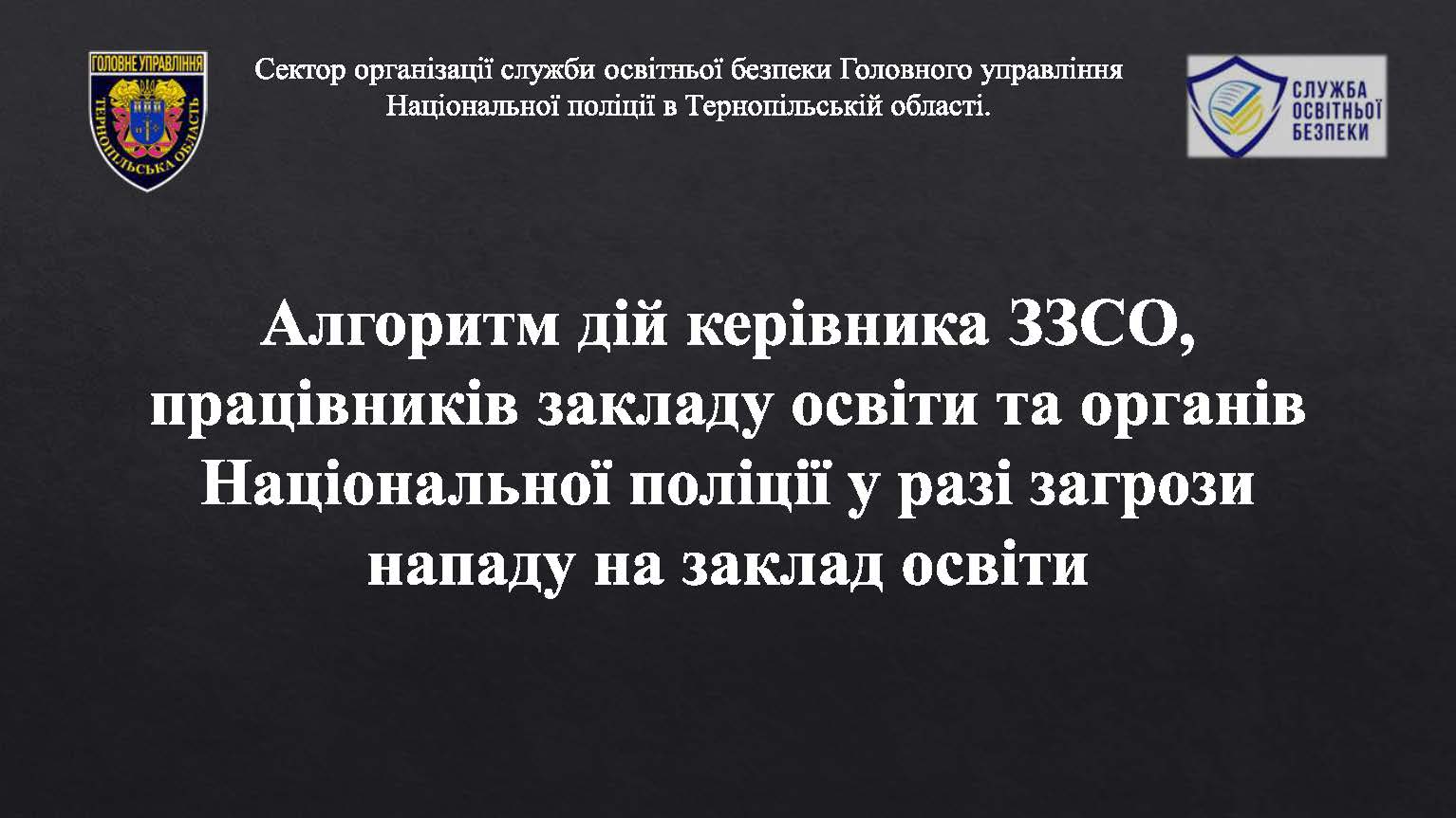 Алгоритм дій керівника ЗЗСО, працівників закладу освіти та органів Національної поліції у разі загрози нападу на заклад освіти.